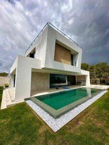 The villa stands out with its modern architecture, spacious garden, stunning sea view, and a luxurious pool β just 5 minutes from the beach. π